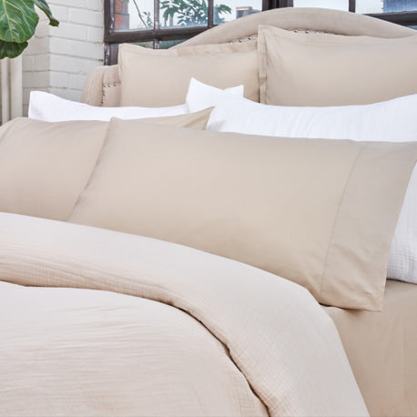 Luxury defined in the careful manufacturing of bedding from duvets, pillows, feather beds, duvet covers, sheets, protectors, and cushions.