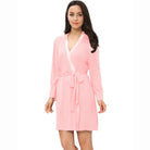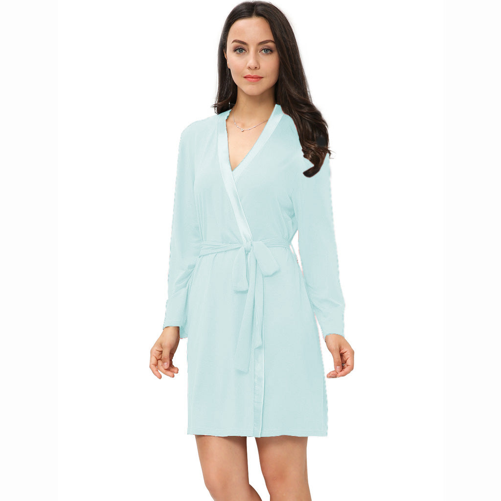 Our generous robe is a delight to wear providing coverage without bulk or weight. The length falls to mid-thigh. Dropped shoulders accommodate most body sizes. It is trimmed in an elegant matching satin edge.