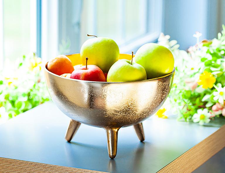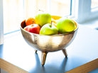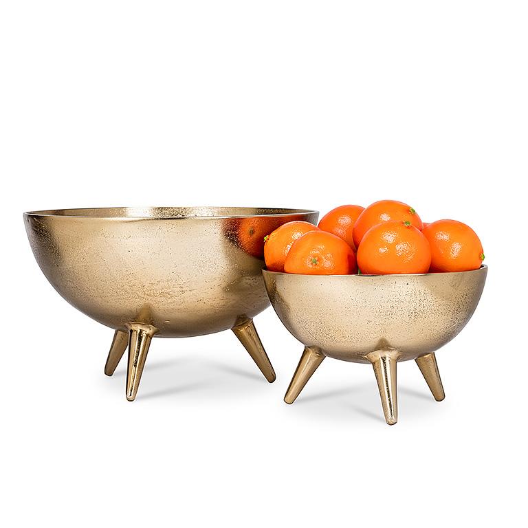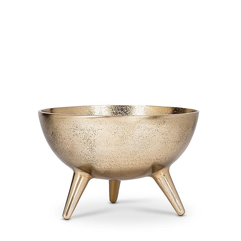 Turn any table's centrepiece into the centre of attention with this striking Small Tripod Bowl. Crafted out of aluminum with a beautiful, burnished gold finish, this elegant bowl is perfect for featuring anything from fruit to decorative accessories and more. Also available as a larger size.