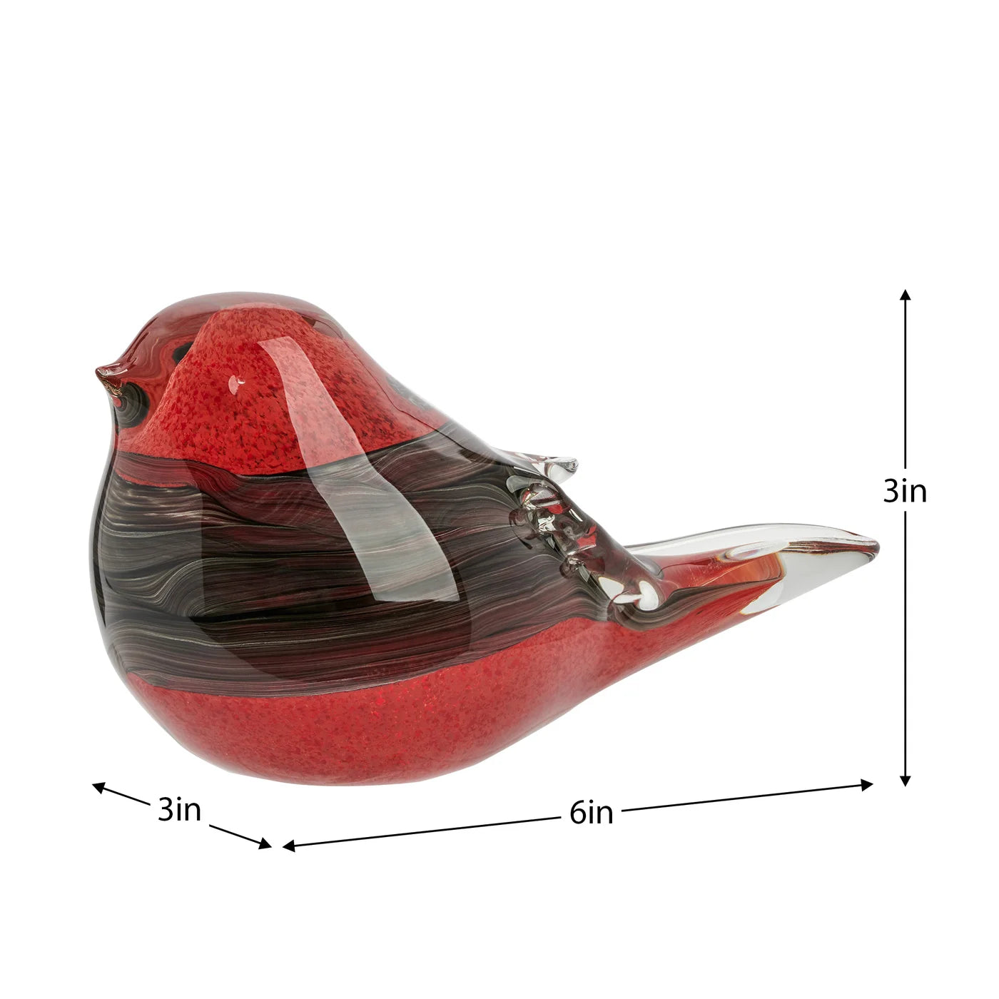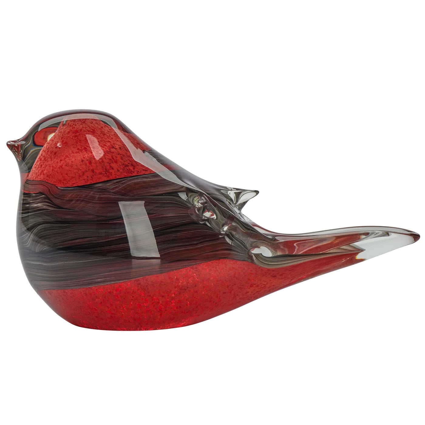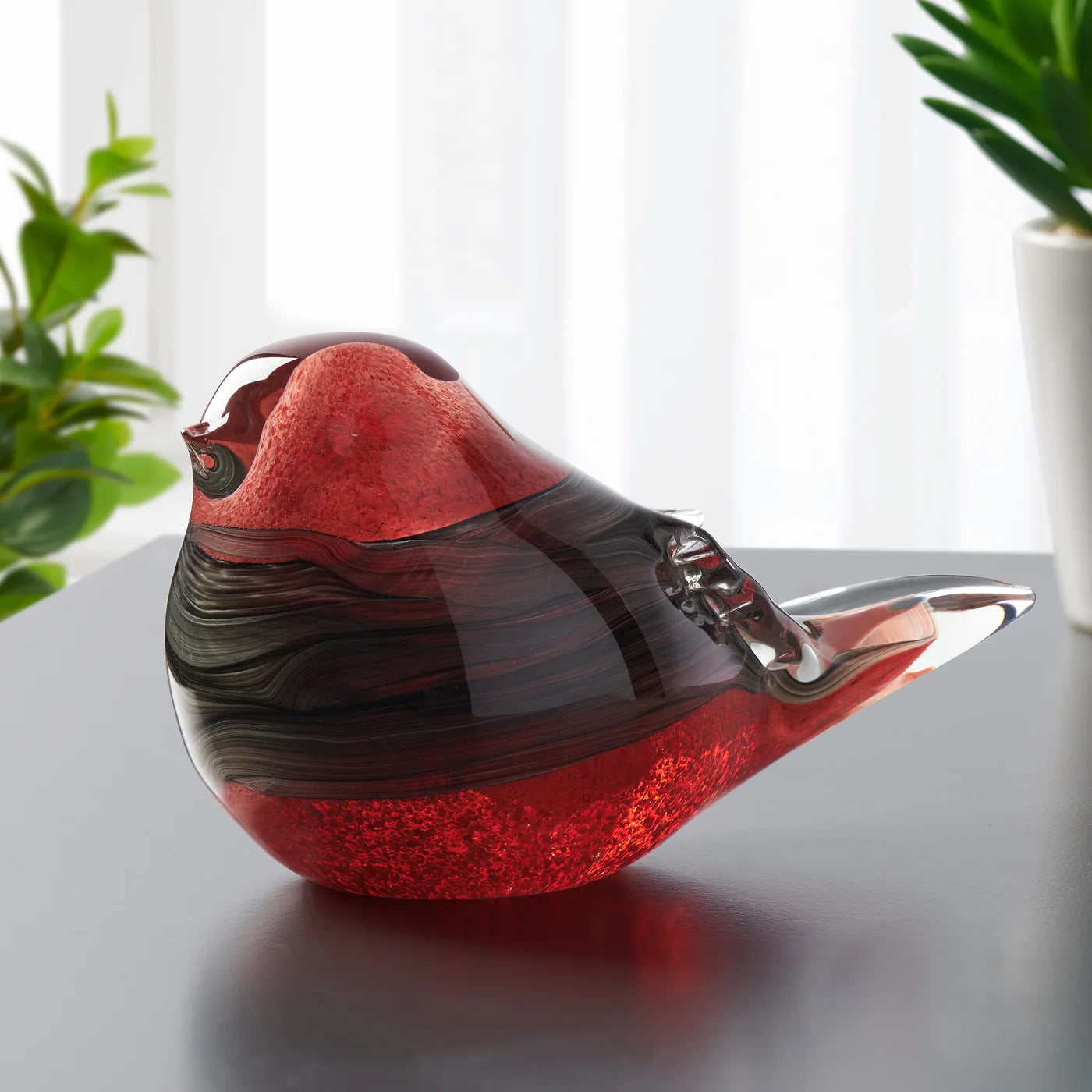 Bring whimsy and style into your decor with this unique glass decorative paperweight. With speckles of red and swirls of black throughout the sculpture, this bird shaped design is both charming and practical. Place on a desk as a paperweight or on a shelf or console as a decorative object.