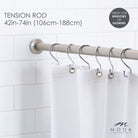 Introducing the Draper Tension Curtain Rod—an ideal solution for your shower, bathtub, closet, window, changing area, and more. Versatile and suitable for both indoor and outdoor use, this tension rod offers hassle-free installation without the need for drilling or creating holes. Crafted from lightweight metal with a sleek Satin Nickel finish, this rod not only provides a stylish touch but also ensures durability. The adjustable length, ranging from 41 to 76 inches, accommodates various spaces with ease. Enhanced with a polished Satin Nickel color, the Draper Tension Rod seamlessly blends into your decor, offering a versatile and chic solution. Equipped with rubber end caps, it ensures excellent traction and a sturdy hold, keeping your curtains securely in place. Upgrade your space effortlessly with a 1-inch rod diameter that combines functionality and aesthetic appeal.