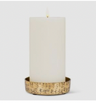 Evocative of the market souk, our Round Hammered Candle Base is meticulously crafted. This decorative candle base showcases a stunning hammered texture that adds a touch of sophistication to any decor. Made from durable aluminum, it combines modern design with timeless appeal. Made in India.