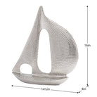 Add a nautical appeal to any room with this contemporary aluminum sailboat decorative sculpture. Featuring a hammered finish and three dimensional appeal, this piece will stand out on a shelf or mantel in the living room or den. It would also make a great gift for any sailing enthusiast!