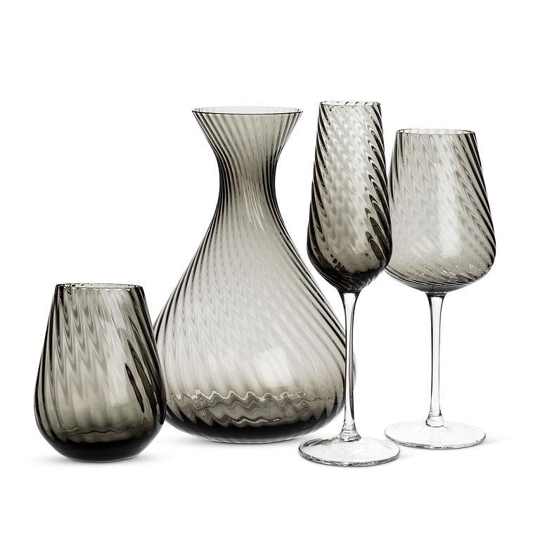 Add some dazzling style to your entertaining and decanting with this striking Twist Optic Large Carafe. This mouth blown carafe is crafted out of smoke-coloured glass that makes a striking complement to its uniquely textured surface. The handcrafted excellence of this piece makes a distinctive addition to any meal, get-together or occasion. Hand wash only. Optic shape may exhibit inherent natural variations.