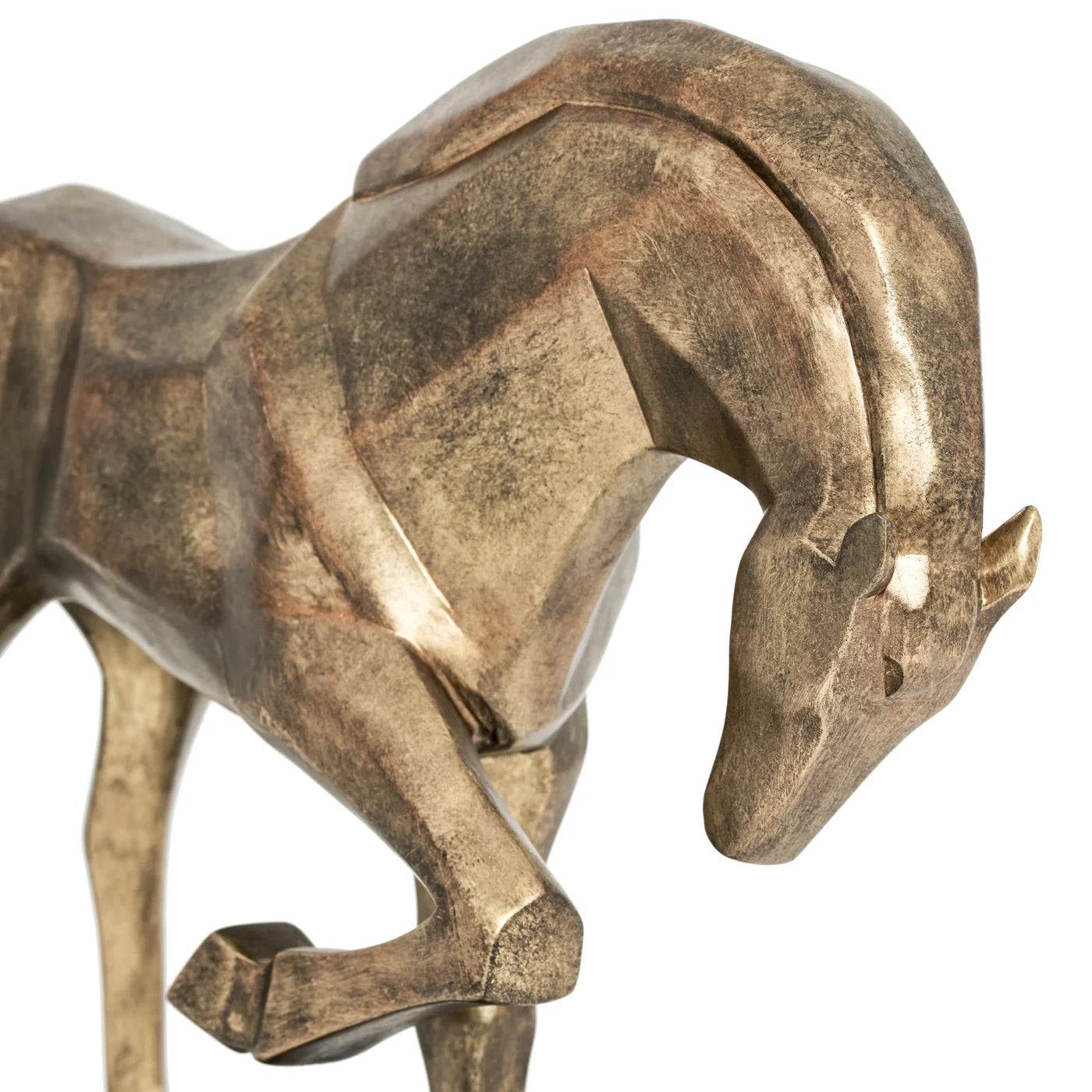 Carved Majestic Prancing Stallion Resin Sculpture Antique Bronze