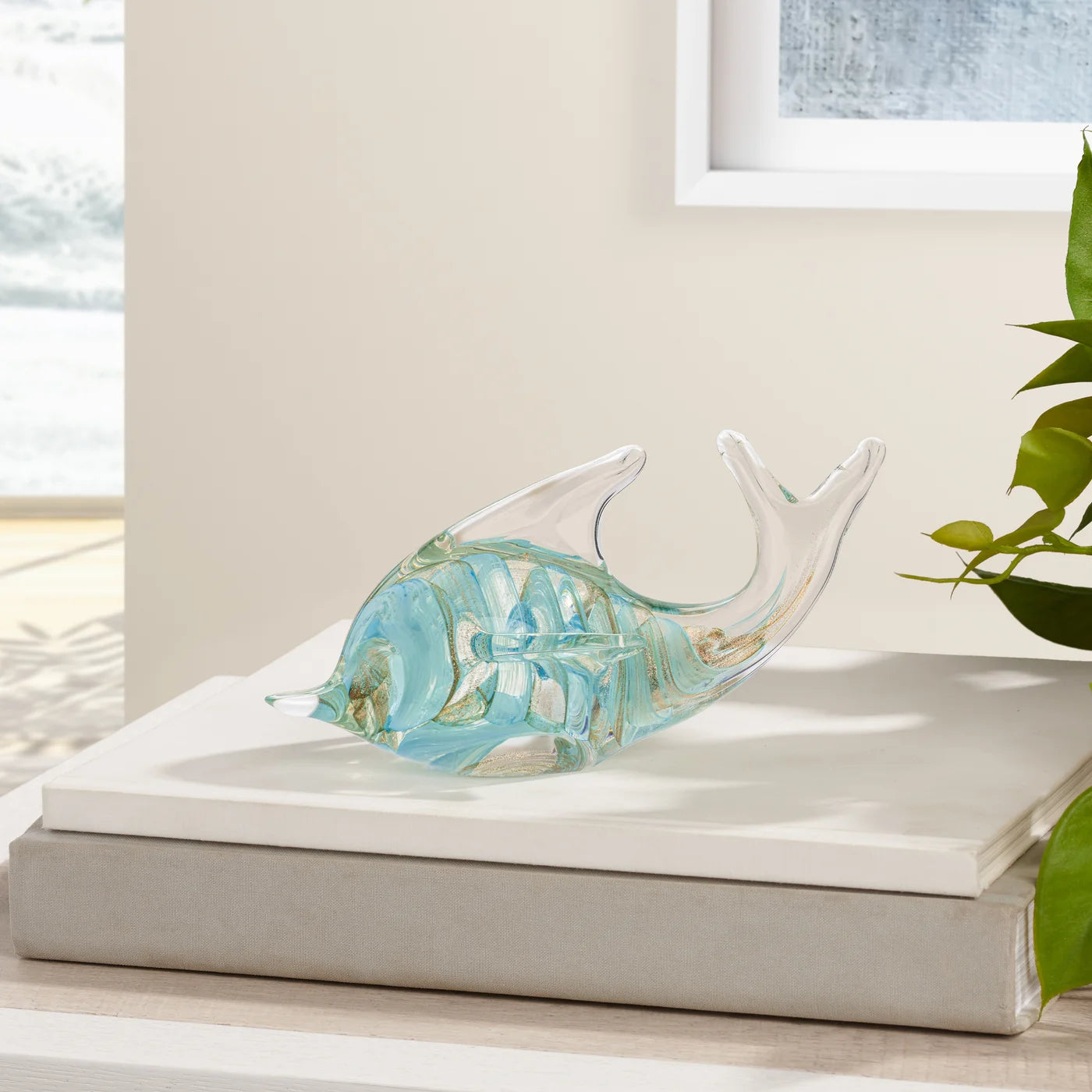 Fish Glass Paperweight Decor - Light Blue Porpoise