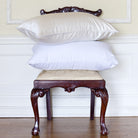 The pillow cover is made from our special 300TC SoLoft™ German 100% cotton which is designed especially for pillows. Included is a gorgeous 100% silk washable pillow protector. The Eider Luxe outer envelope needs to be turned inside out halfway through the drying cycle to ensure the inner layers are completely dry. Please check it carefully.