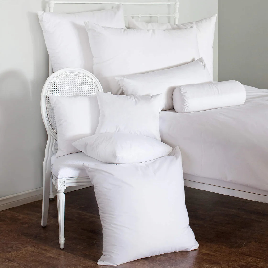 Our pillow forms add layers of comfort to your bed. Sizes such as euros, grands and headliners add beauty and dimension. They are perfect for lounging in bed while reading, or for providing support as a body pillow. They can also be used as sleep pillows for those that prefer a firmer feel.