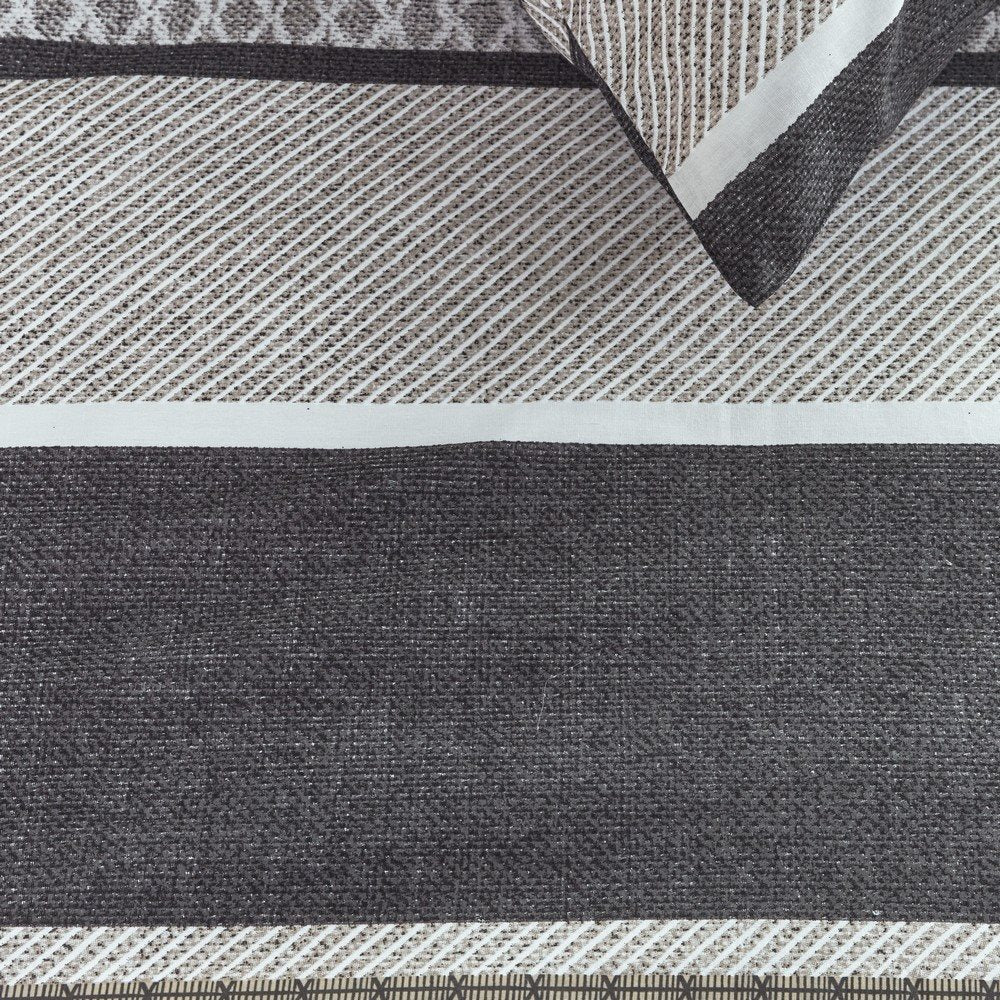 - Striped duvet cover set with geometric prints in shades of grey, charcoal grey and taupe