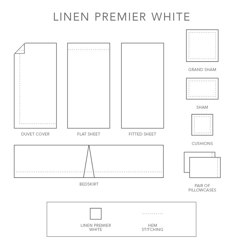 This heirloom-quality linen exudes elegance. Premier's texture is smoother, softer, and lighter than other linens, and it's also incredibly breathable, absorbent, durable, and machine washable. Linen Premier in White with an elegant hemstitch detail is a luxurious indulgence and a timeless classic.