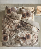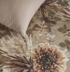 - Flowered duvet cover set in shades of brown, terracotta and beige
