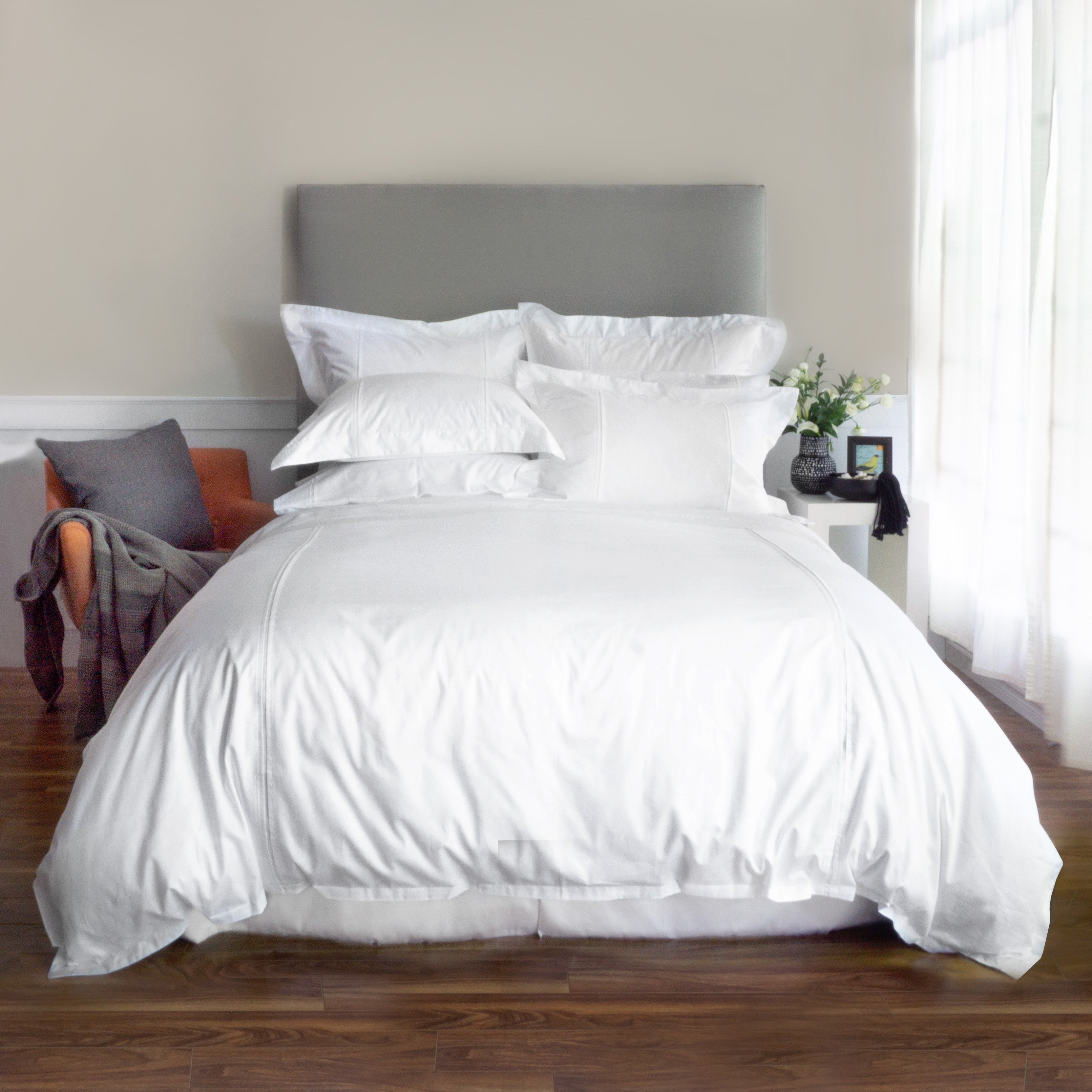 Regency's story begins in Italy with 1,010 strands of Egyptian extra-long-staple cotton that are spun into the finest threads and woven to create the most luxurious sateen. Regency truly comes to life in our atelier where each piece is meticulously cut and finished with an elegant double-facing tuck pleat. Regency ages gracefully, becoming even softer and silkier over time and washing. Available in white or cream.