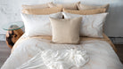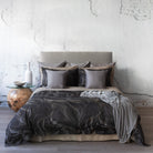Imagine an evening star when the equinox is at its zenith, bringing its starry and deep hues to the bed. Vesper invokes a chic understated energy into your evenings. A beautiful spray of unstructured flair on an exquisitely woven jacquard, Vesper fits your tastes in 3 dramatic colorways of Midnight, and Ivory.
