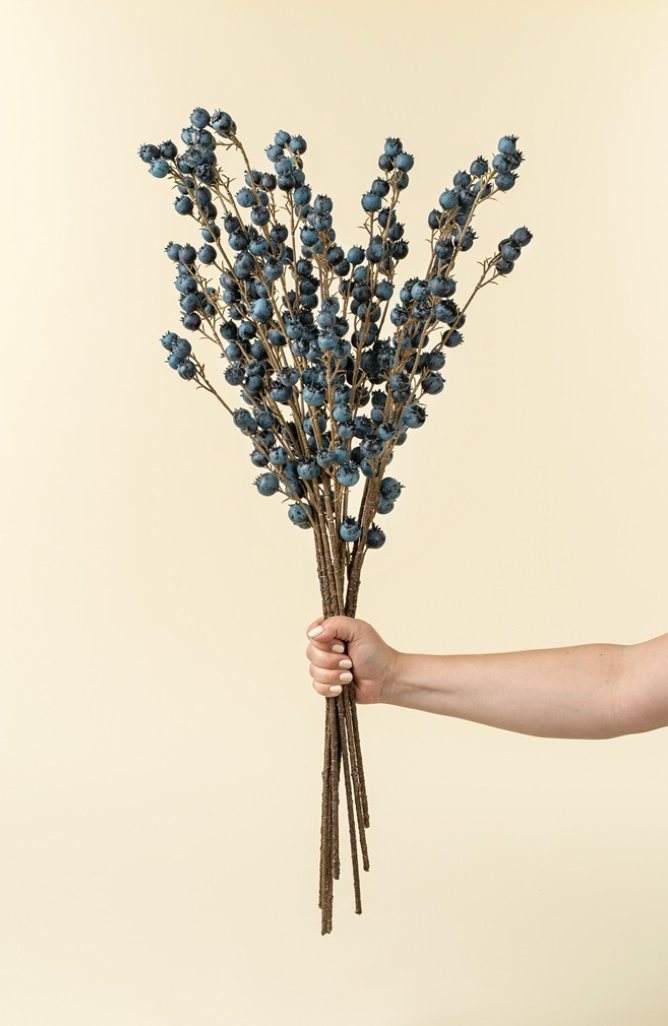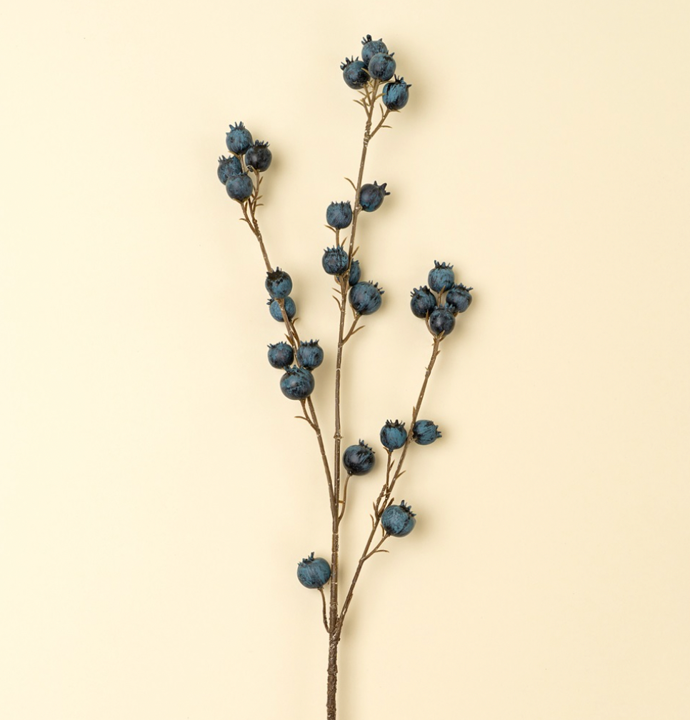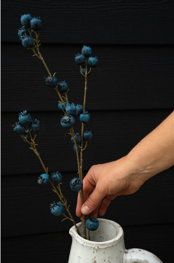 Vibrant and full of character, the Blueberry Branch brings a foraged feel to your faux florals. With clusters of deep blue berries on natural-looking stems, this playful accent looks like it was just picked from the wild, tempting you to reach out and pluck one.