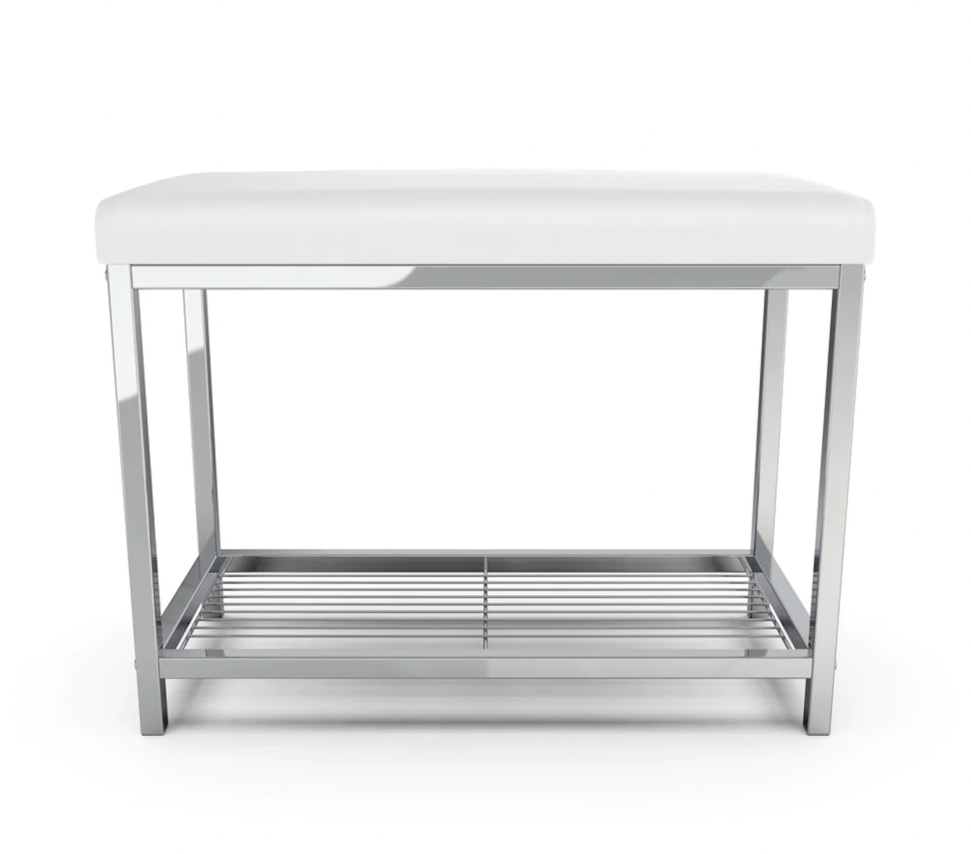 Moderna Vegan White Leather Vanity Bench with Chrome Base