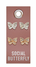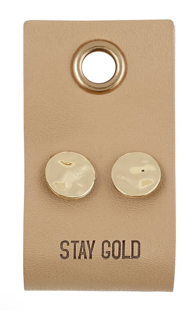 - Gold Stud Earrings on a Leather Tag