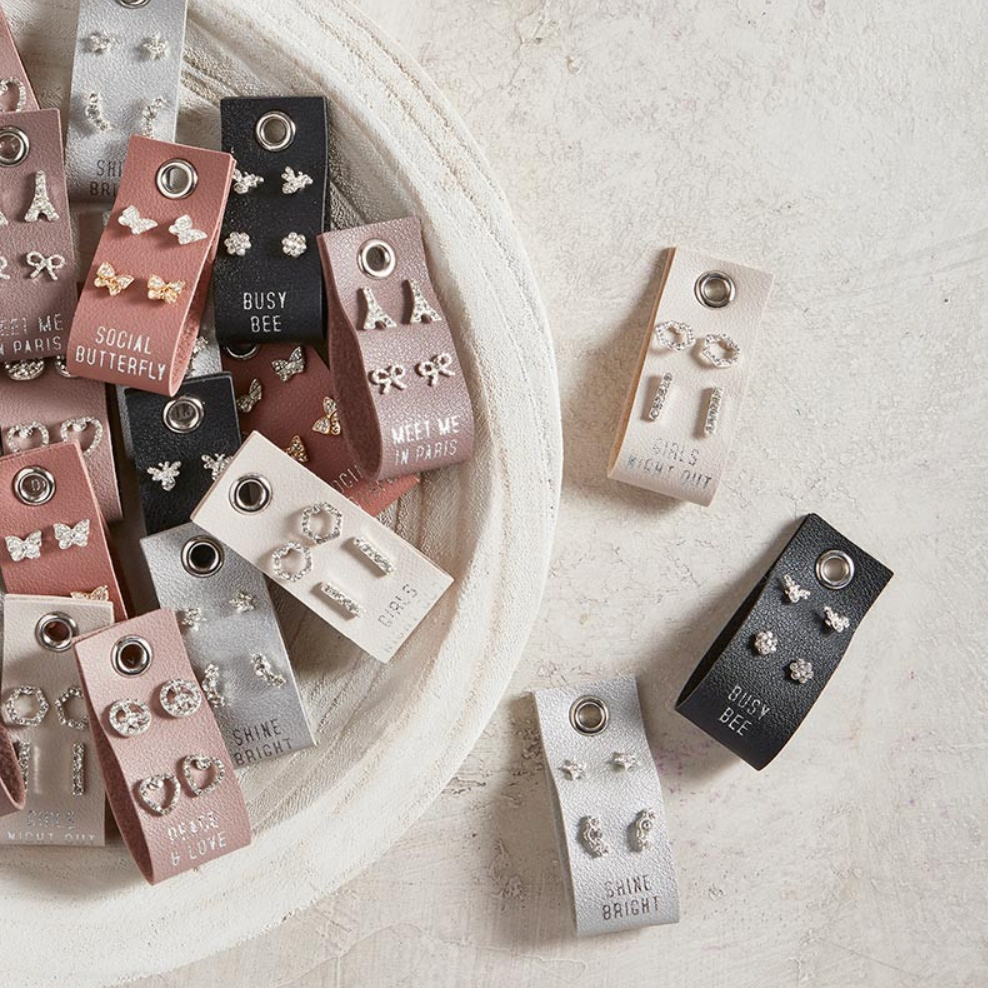 Perfect Gifts! Gold Stud Earrings on Leather Tags