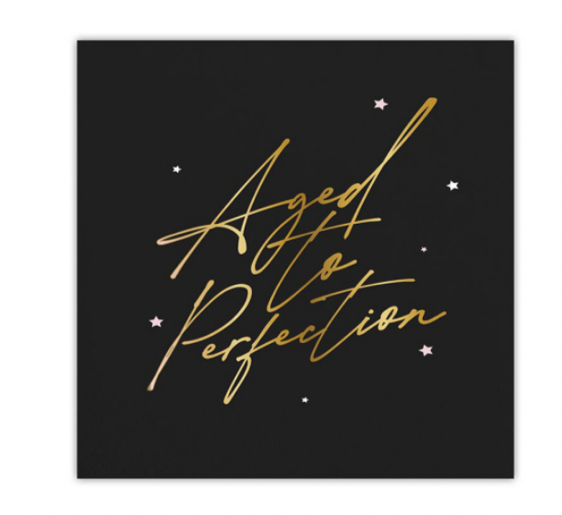 Aged To Perfection Black & Gold Foil Cocktail Napkins 5"