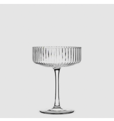 Give your cocktail party the glassware it deserves with this Tight Optic Cocktail Coupe. Crafted out of optic glass with intricate line detailing, this glass is sure to be the star of any entertaining occasion. Also available in other styles.