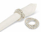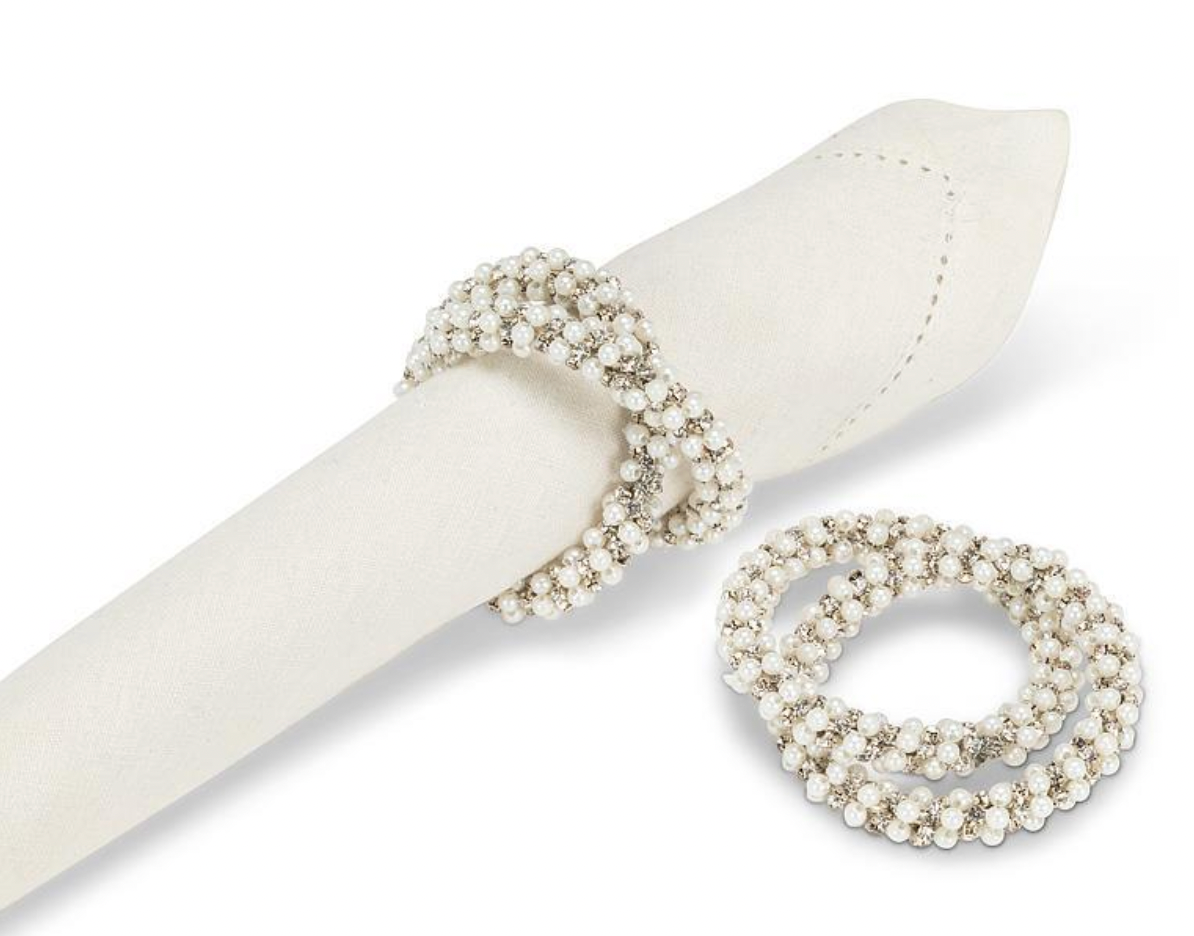 Give your table a touch of sparkle with this Intertwined Pearl & Jewel Napkin Ring. With shimmering jewels and delicate pearls woven together, this elegant napkin ring is sure to elevate any get-together or entertaining occasion. Whether it's a special dinner or a holiday celebration, it’s a stunning finishing touch that's sure to wow your dinner guests.