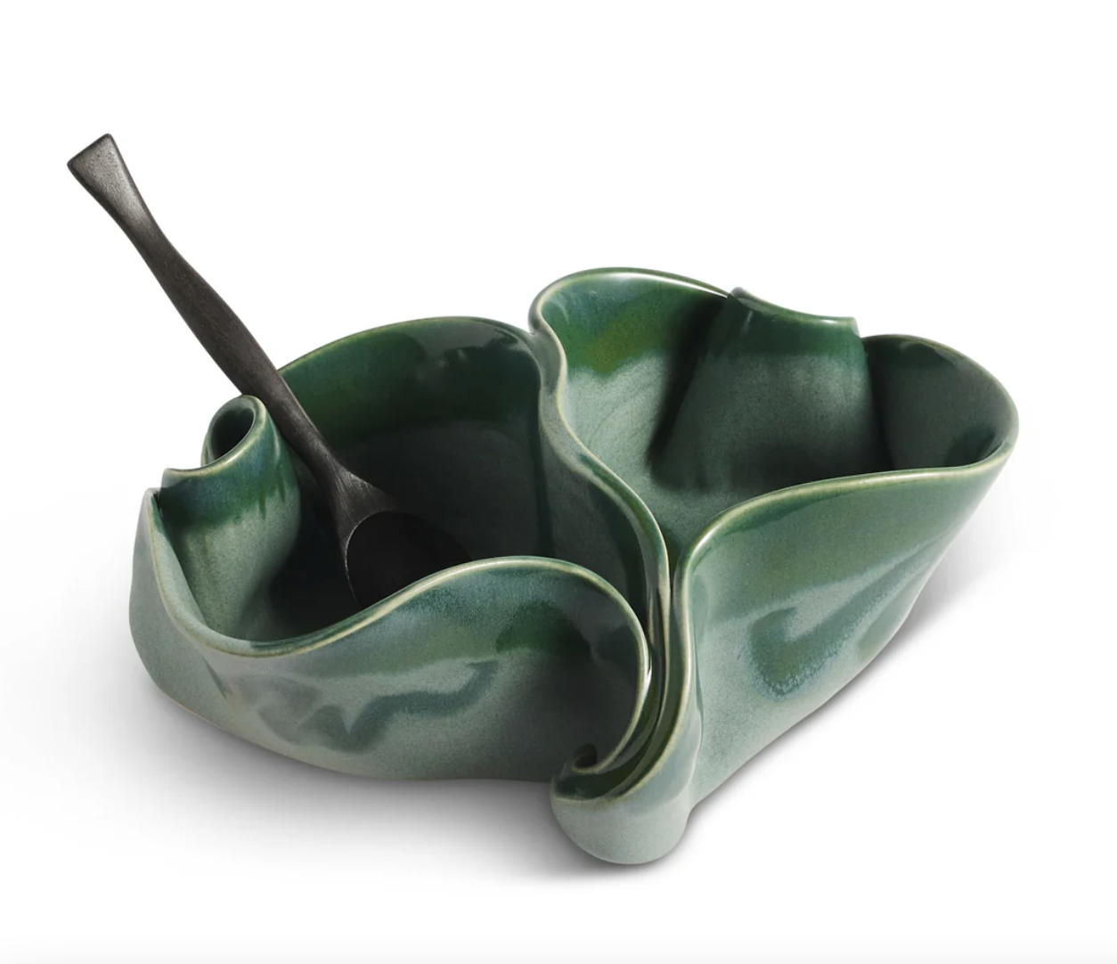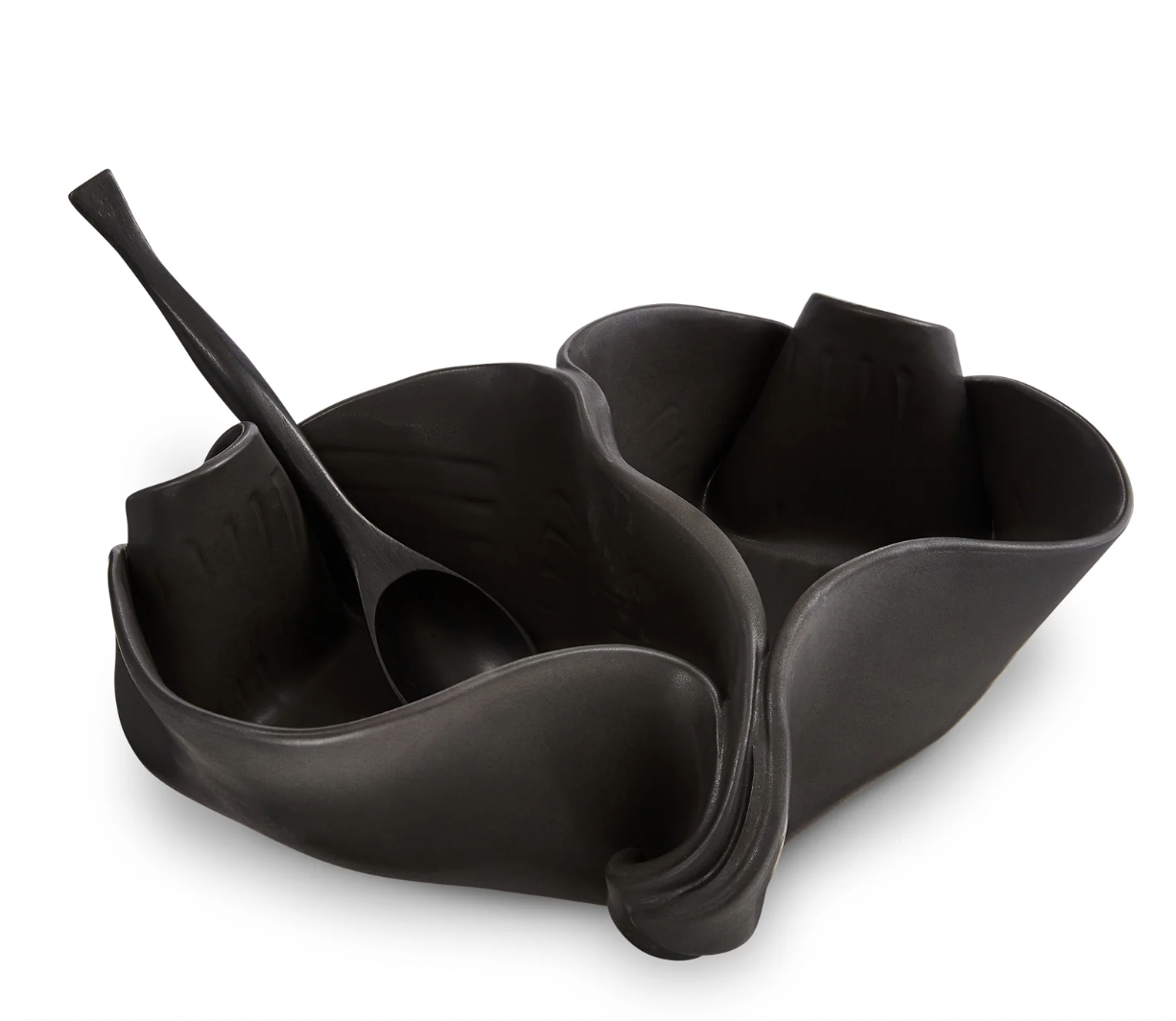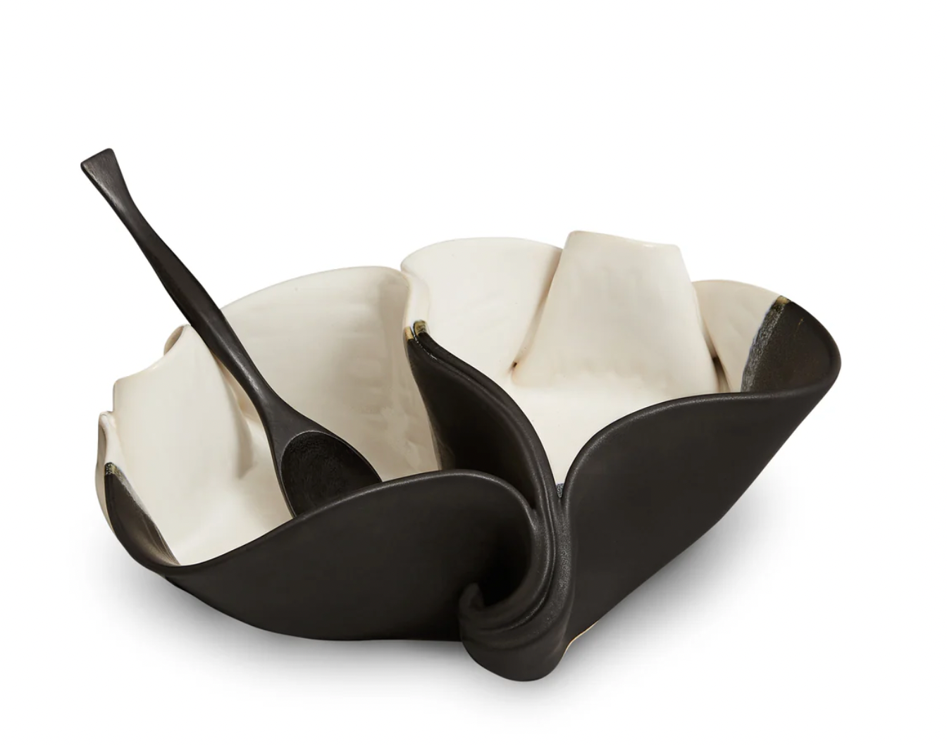 Fill up one side, then empty it to fill up the other side with empty shells from the full side. Do you follow me so far? Are you half-full or half-empty? Comes with a rosewood spoon.