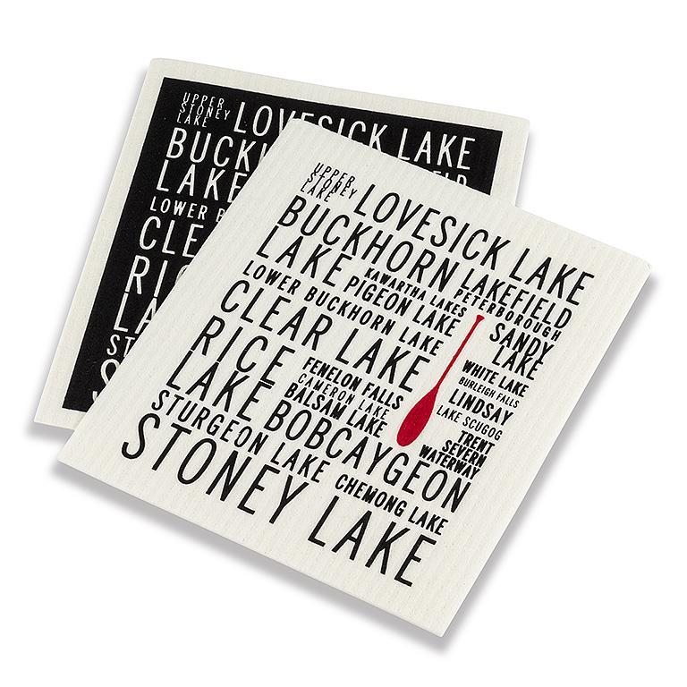 Clean up and share your love of cottage country at the same time with this set of 2 Kawartha Lakes Dishcloths. Part of the ManMade Collection, these biodegradable Swedish-made dishcloths are as durable as they are eco-friendly. Ultra-absorbent, each cloth replaces up to 15 rolls of paper towel, and lasts for up to 12 months. Perfect for the home, office or cottage.