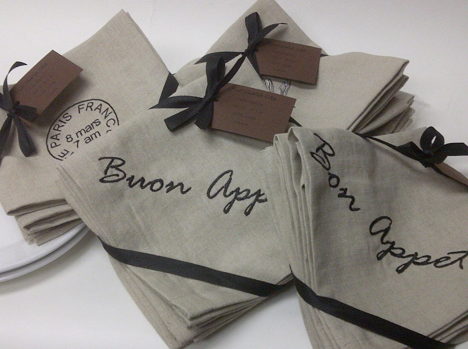 Buon Appetito Set of 4 Linen Embroidered Napkins