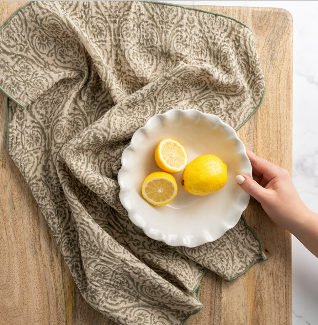 Aria Block Print Tea Towel Crinkle Cotton Set of 2