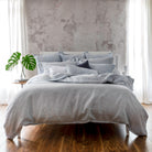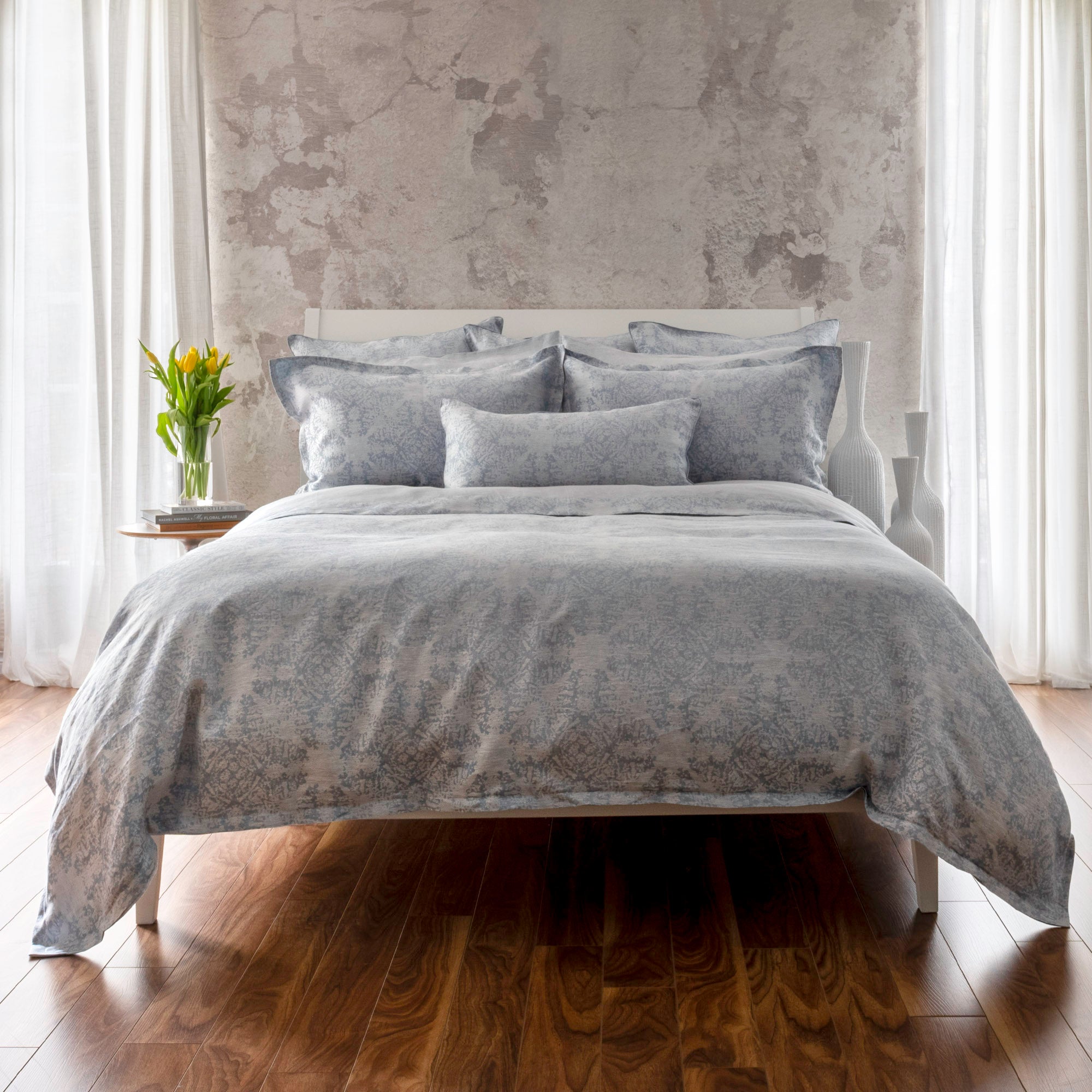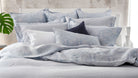 An intricately woven ikat pattern lets the light shimmer on this multifaceted linen sateen, bringing this crafted textile to life. A sky blue hue creates a refreshing and airy retreat, with a pattern that balances the classic look and the essence of nouveau. Fina stands the test of time.