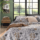 - Foliage printed quilt in shades of tan, grey and black