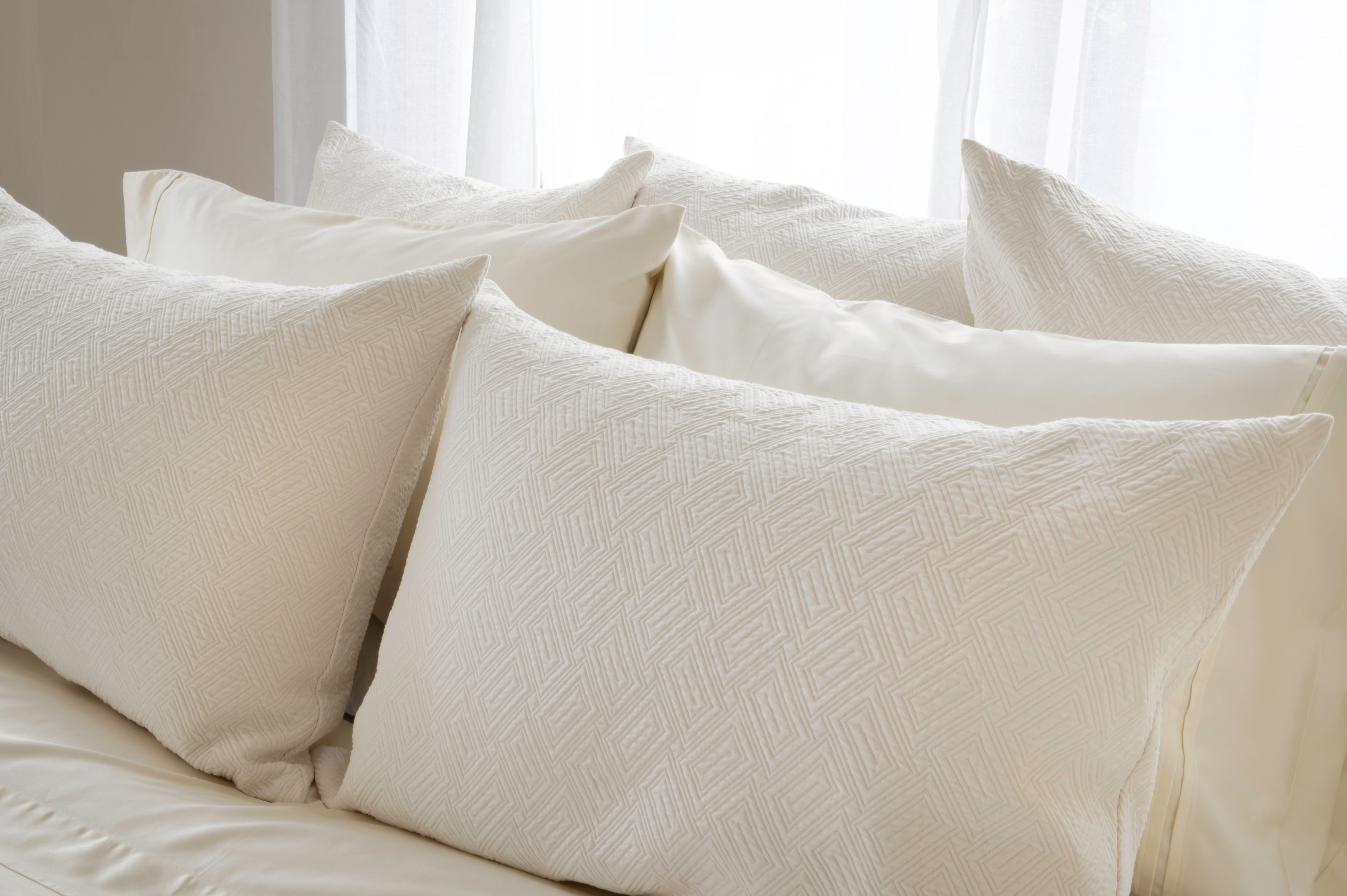 A versatile elegant coverlet that perfectly complements any bedroom. Scala sparkles with geometric precision creating an understated dazzling visual effect, true to its name. This luxuriously soft sateen matelassé has a contemporary and tactile simplicity that defines minimalistic elegance. Made from exceptionally soft 100% Egyptian Giza cotton, Scala will bring sophistication to the bedroom with ease.