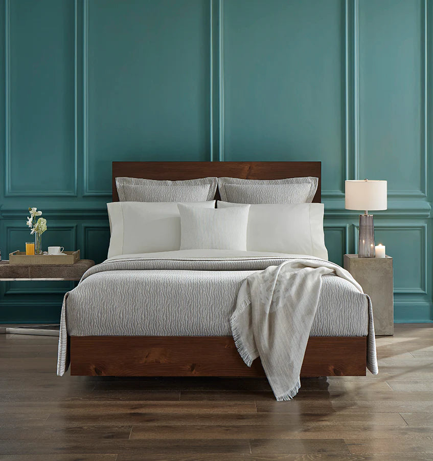 Inspired by landscapes of rolling sand dunes, Ondate is rendered in a two-toned yarn-dye weave that reminisces undulating wavelets. Textural and smooth, the reversible coverlet has a subtle and soft palette in an arresting statement of exquisite artistry.