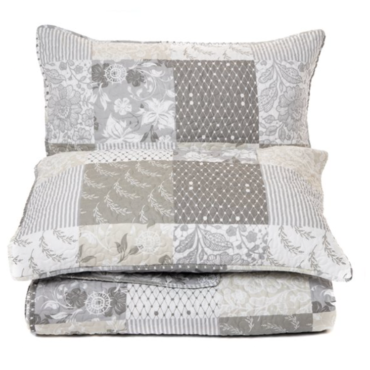 Vanille Grey & Greige Quilted Coverlet Set Reversible