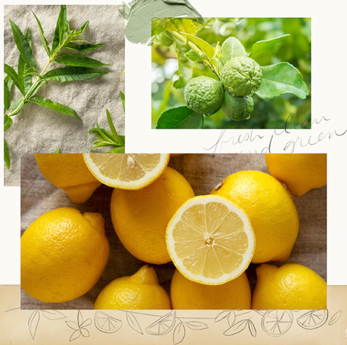 Sunny and sparkling, this uplifting fragrance creates a green, citrus-filled escape for the home. Dewy leaves. Crisp white wood accord. Creamy lily of the valley. Effervescent lemon verbena. Bergamot oil. Geranium blooms.