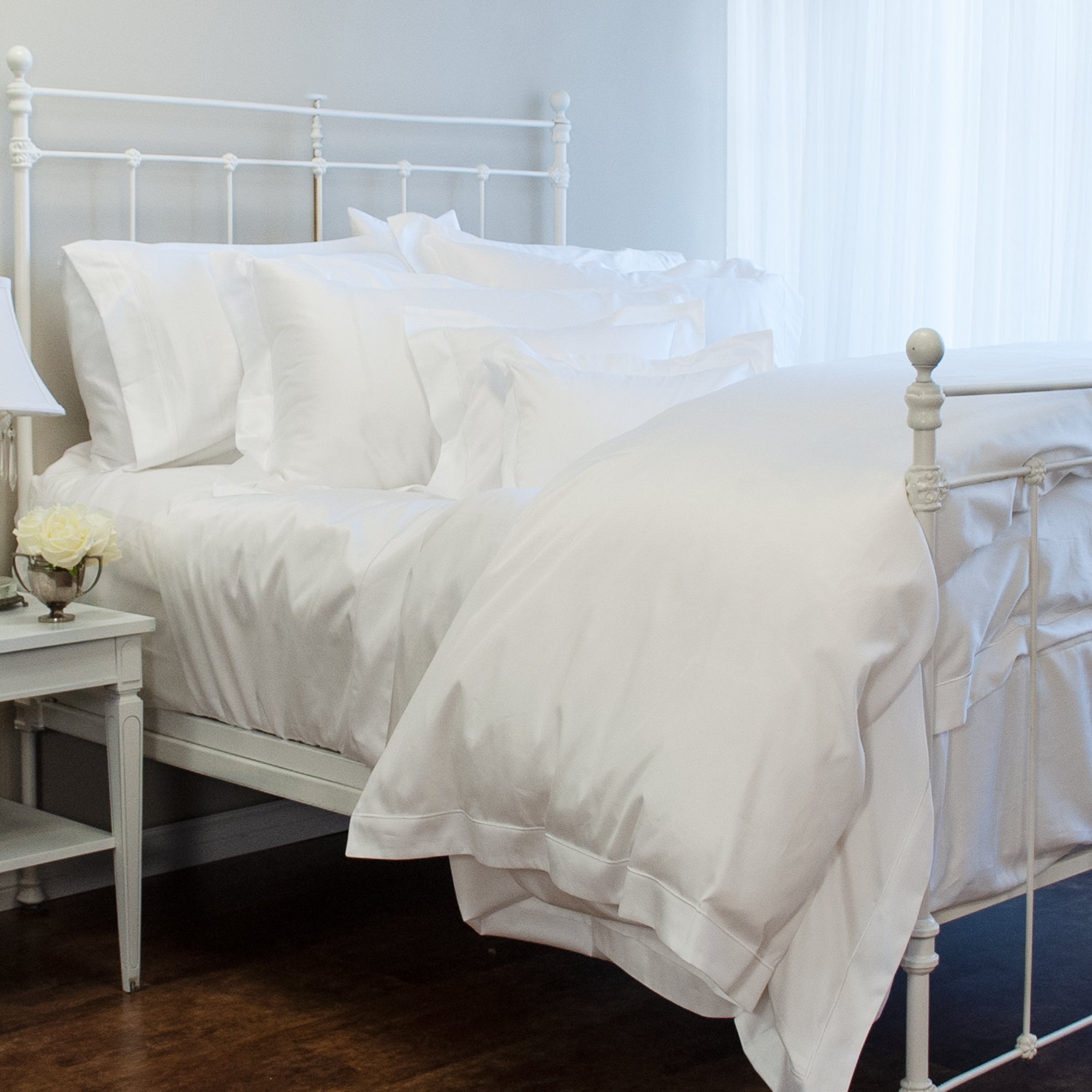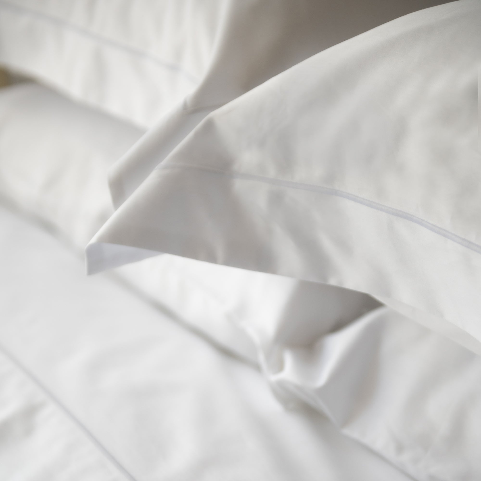 Grand in fiber, feel, and finish. Grand Veneto is made using two strands of the finest 100% extra-long-staple cotton threads twisted together and then woven into a sateen with exceptional softness and strength. Grand Veneto truly comes to life in our atelier with flanges on the duvet covers, shams, and cushions, with a matching satin-stitch detail for an elegant and polished finished.