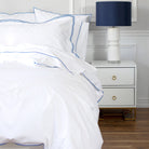 Our crisp, white percale is woven with the finest long-staple cotton and elevated with a contemporary and elegant purl stitch edge detail. Customize your look and create the perfect accent for your space by choosing your own edge trim colour. Single shams are extra special with a double open flange and purl stitch. Flat sheets and pillow cases feature a generous 3" cuff with purl stitch.