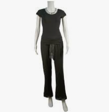 Bamboo Short Sleeve PJ Set with Long Pants - Black