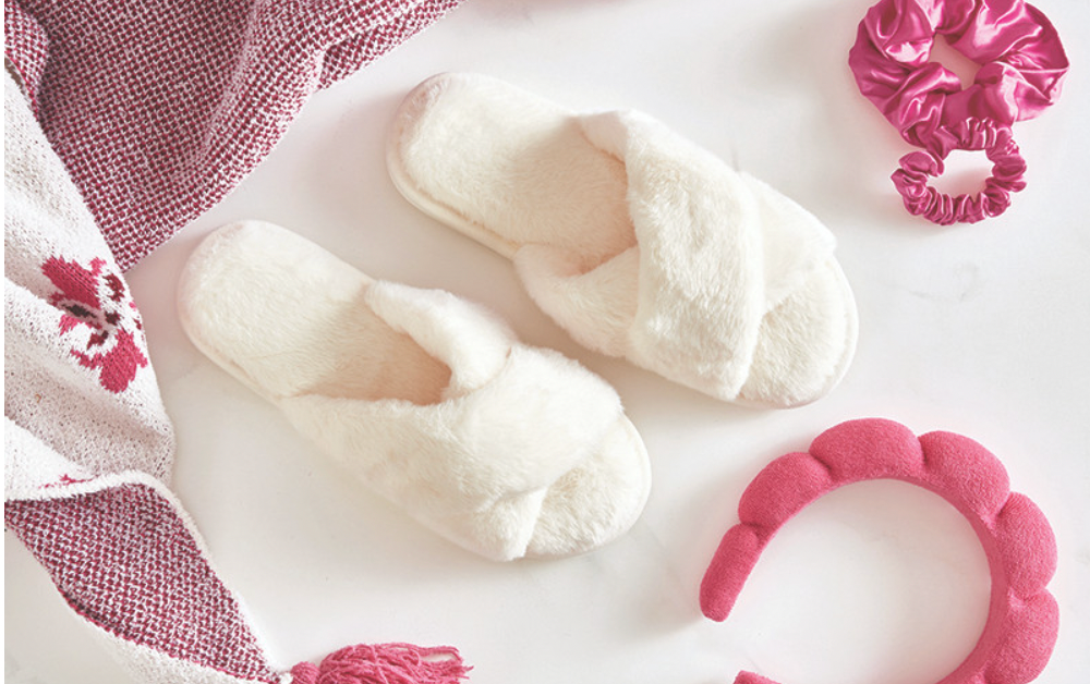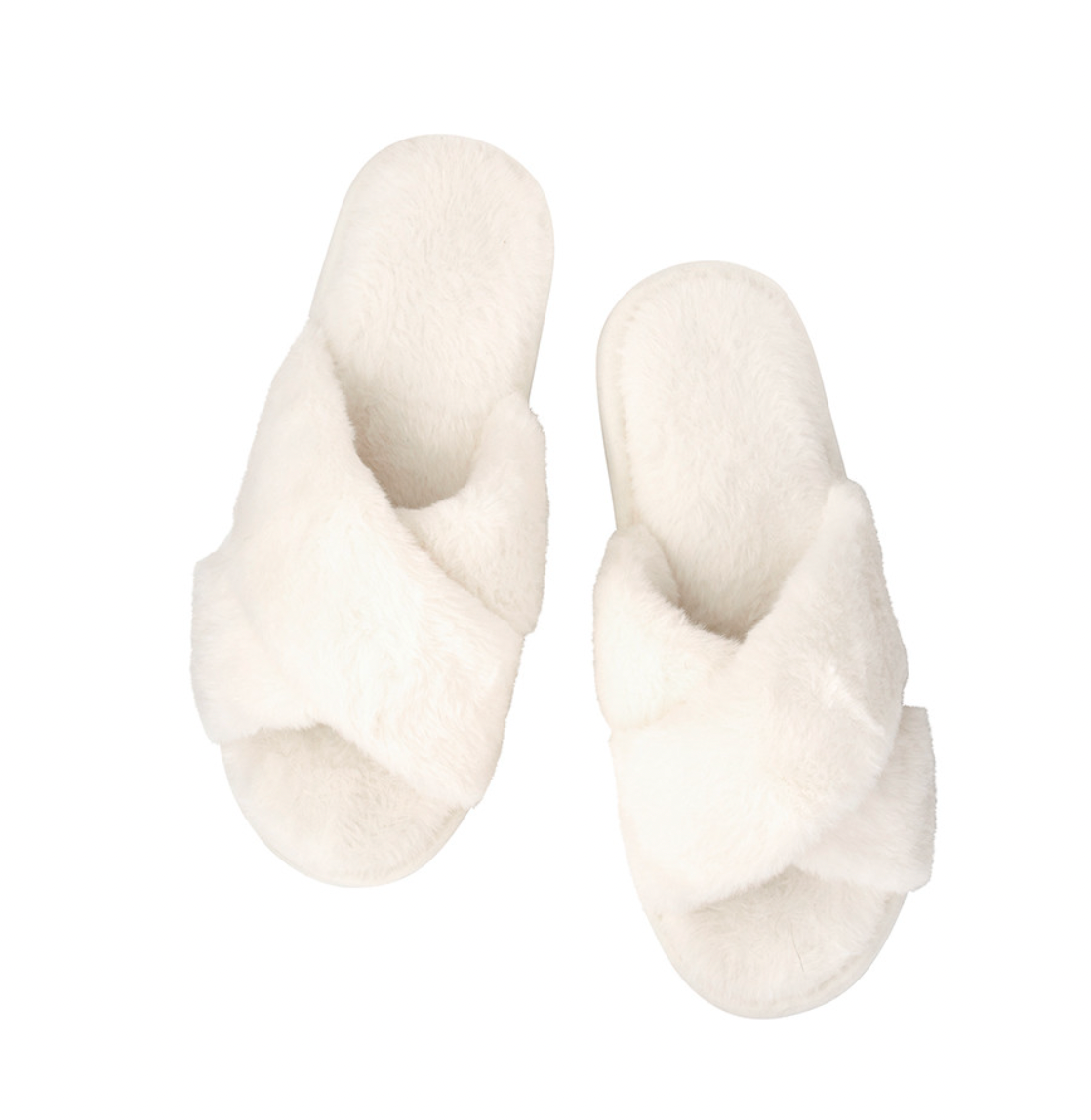 Bella Sleep & Spa Plus Ivory Criss-Cross Slippers