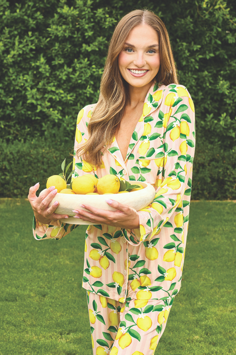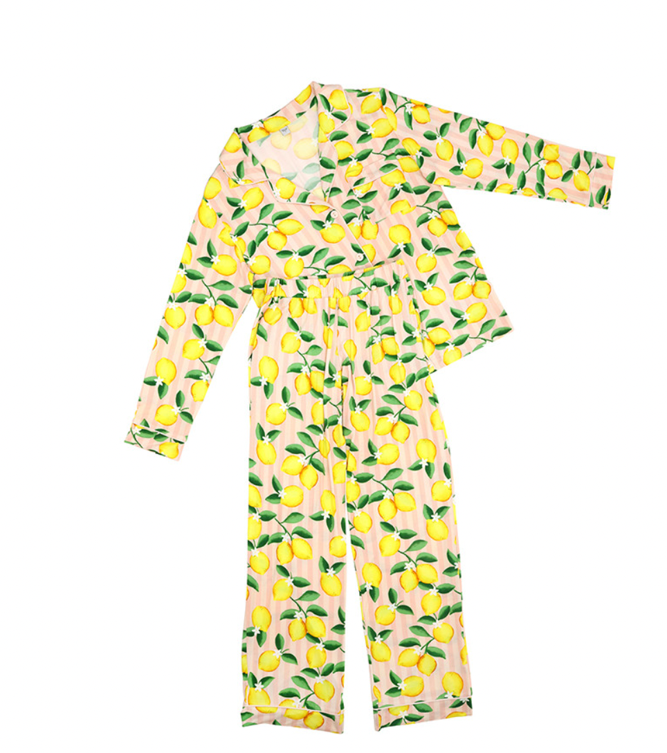 Bella Sleep & Spa Lemon Bamboo Pants with Long Sleeve Pajama Set