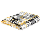 - Plaid throw in shades of black, ivory and mustard