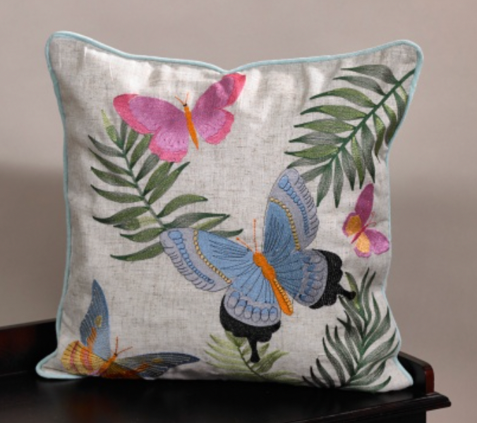 Beautiful Butterfly Whimsical Embroidered 3D Cushion 19"