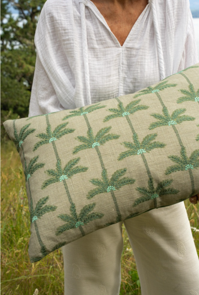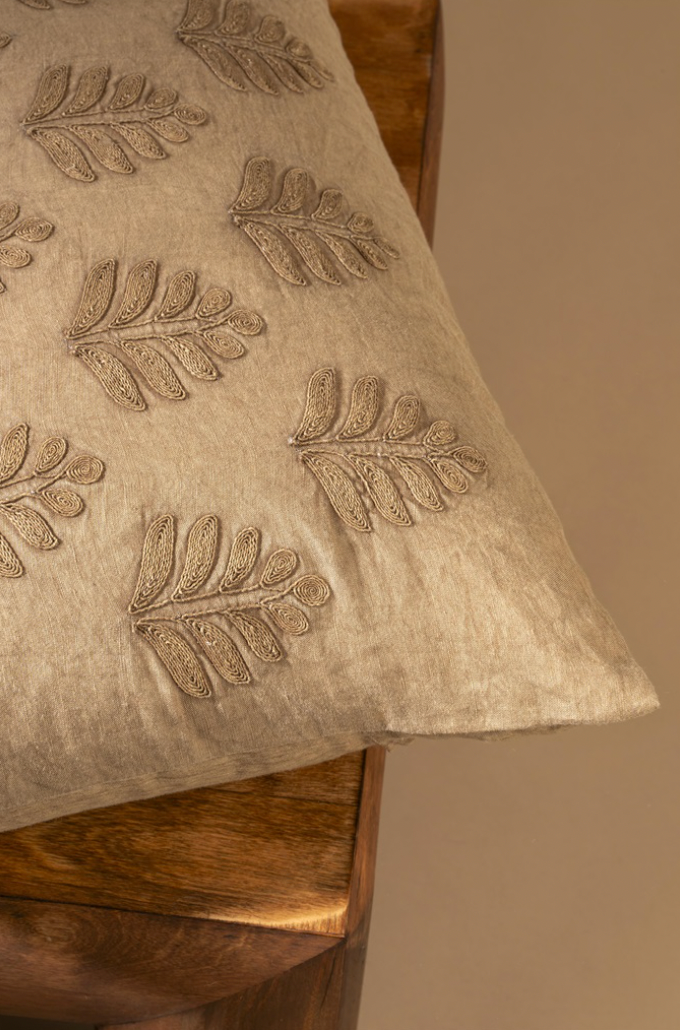 The Lake House Embroidered Linen Cushion 20"x20" With Feather Insert