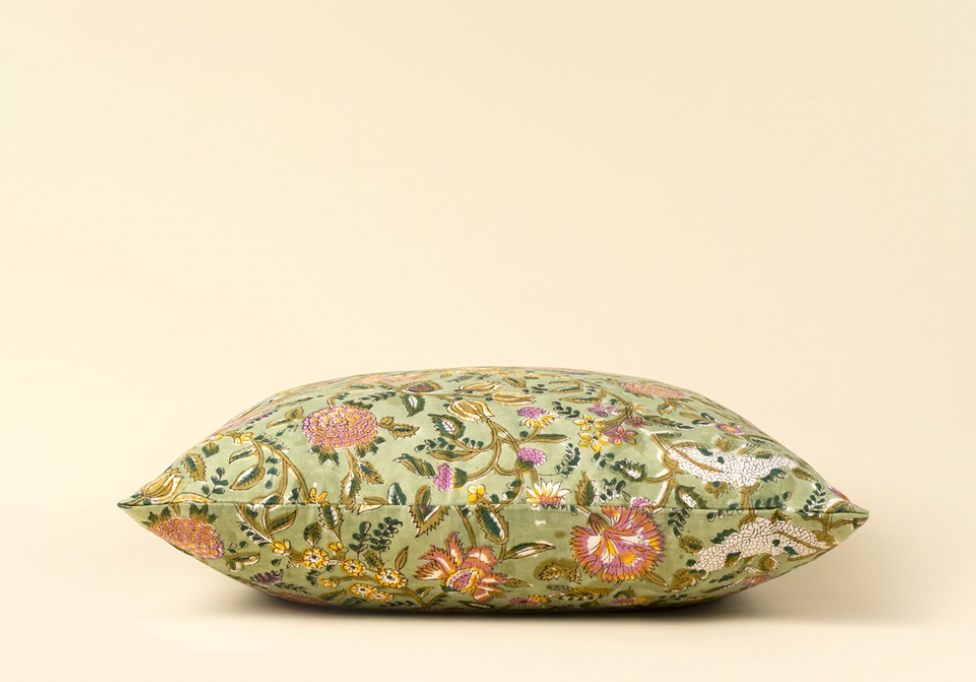 Maeve 14"x31" Bolster Hand Block Printed Mist Cushion