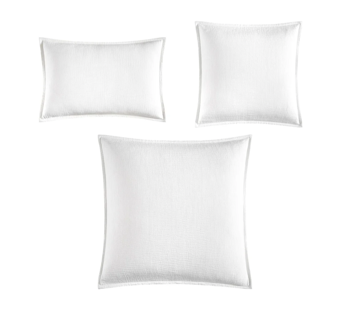These cushions feature a prewashed matelassé fabric, offering a textured depth that adds sophistication to any space. Crafted from 100% cotton, they reverse to a matching 200 thread count cotton percale for a smooth feel. Filled with a luxurious feather filler, they provide true comfort and support. Available in three colors—Cream, Latte, and Danube— these cushions add both style and comfort to your home.