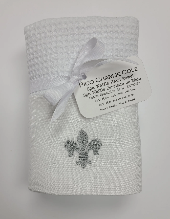 Vintage Linen Tea Towels - Ivory/Navy Set of 2