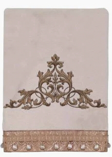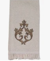 100% Cotton Velour Cream Fingertip Towel With Lace Trim