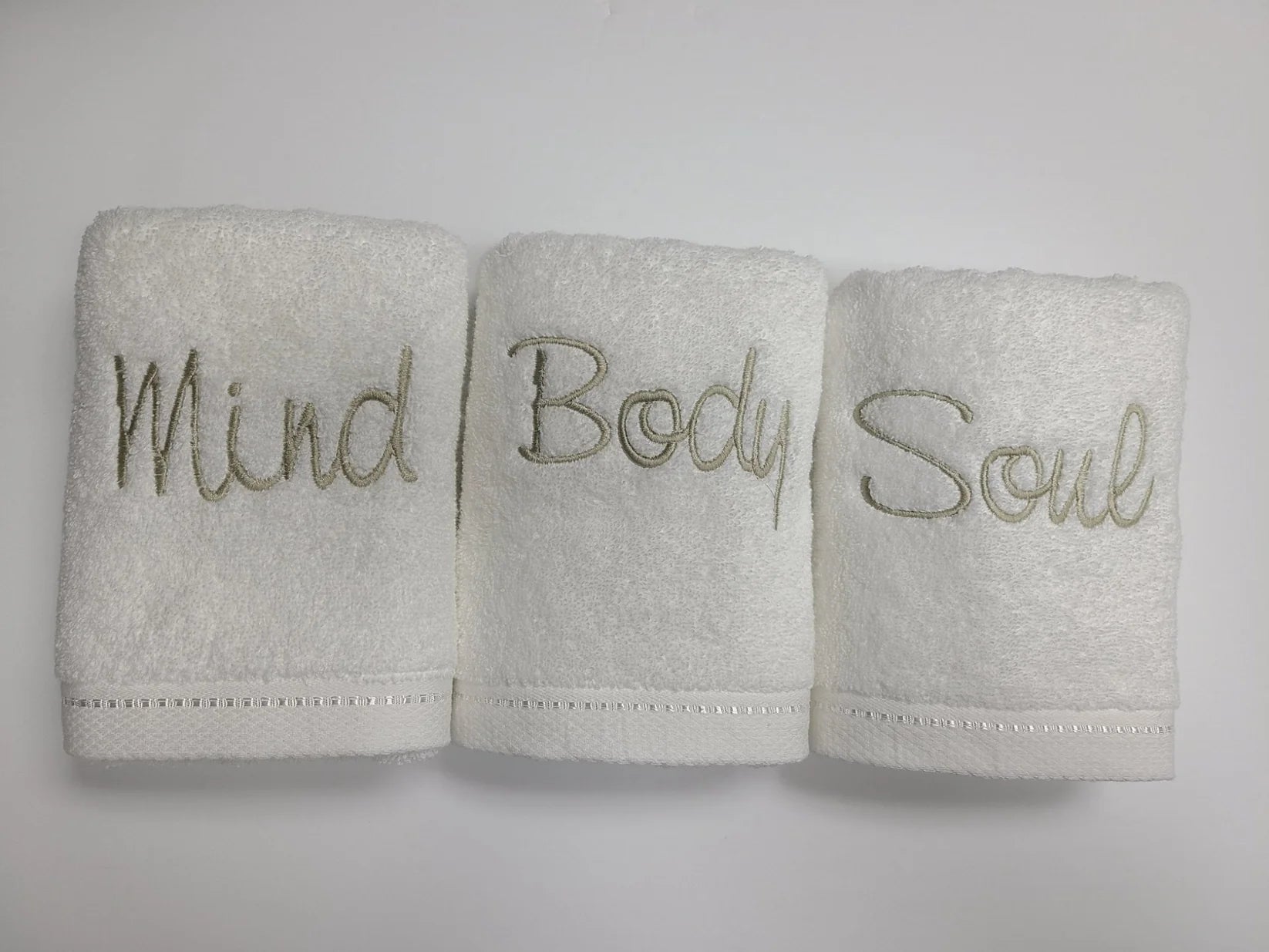 Mind Body Soul Embroidered Hand Towel Set of 3