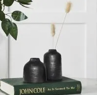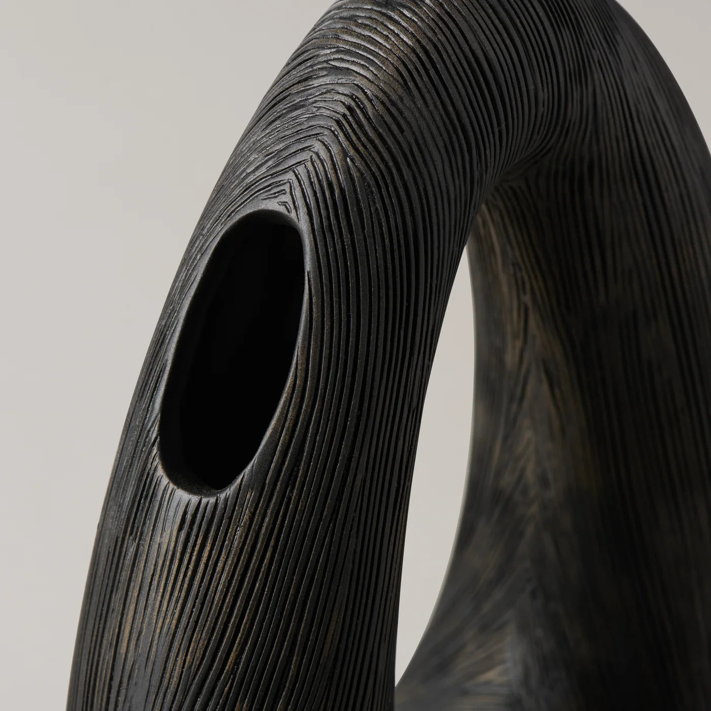 Alma Etched Patina 11.5h" Resin Tall Donut Vase - Black