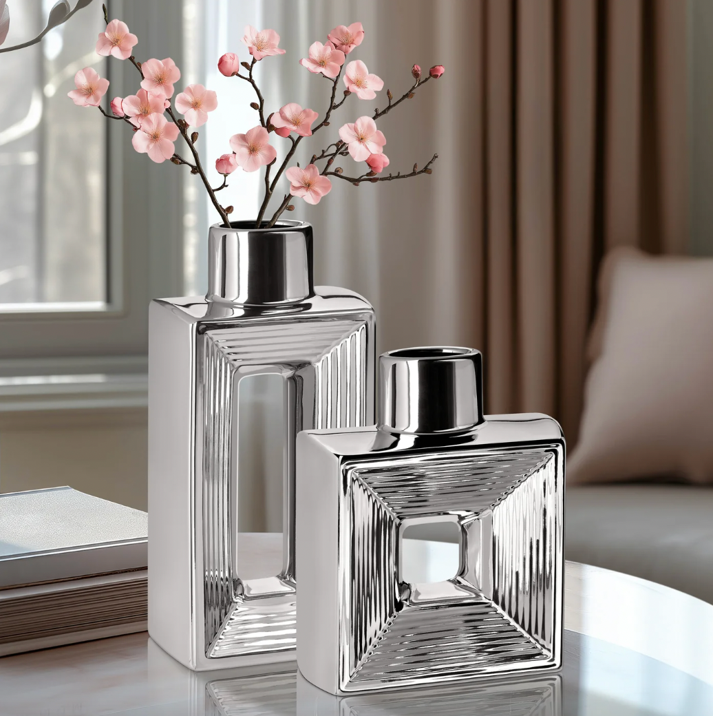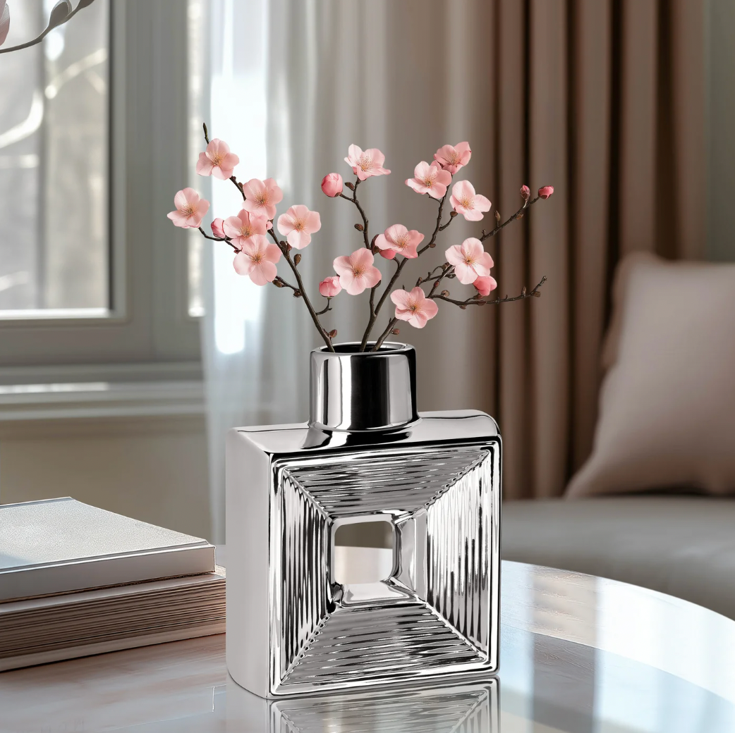 Lilo Dimpled Ceramic 8.75h" Vase - Silver