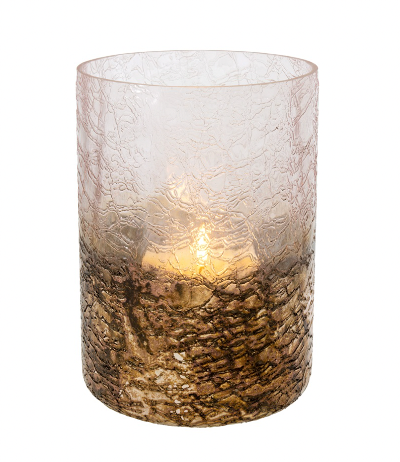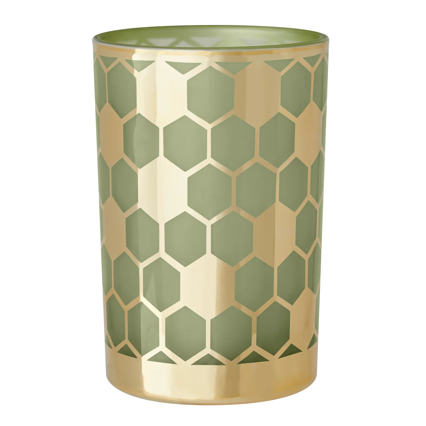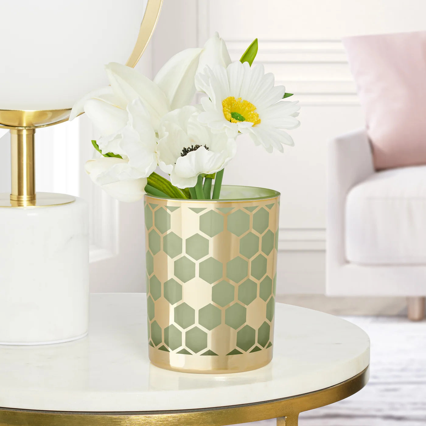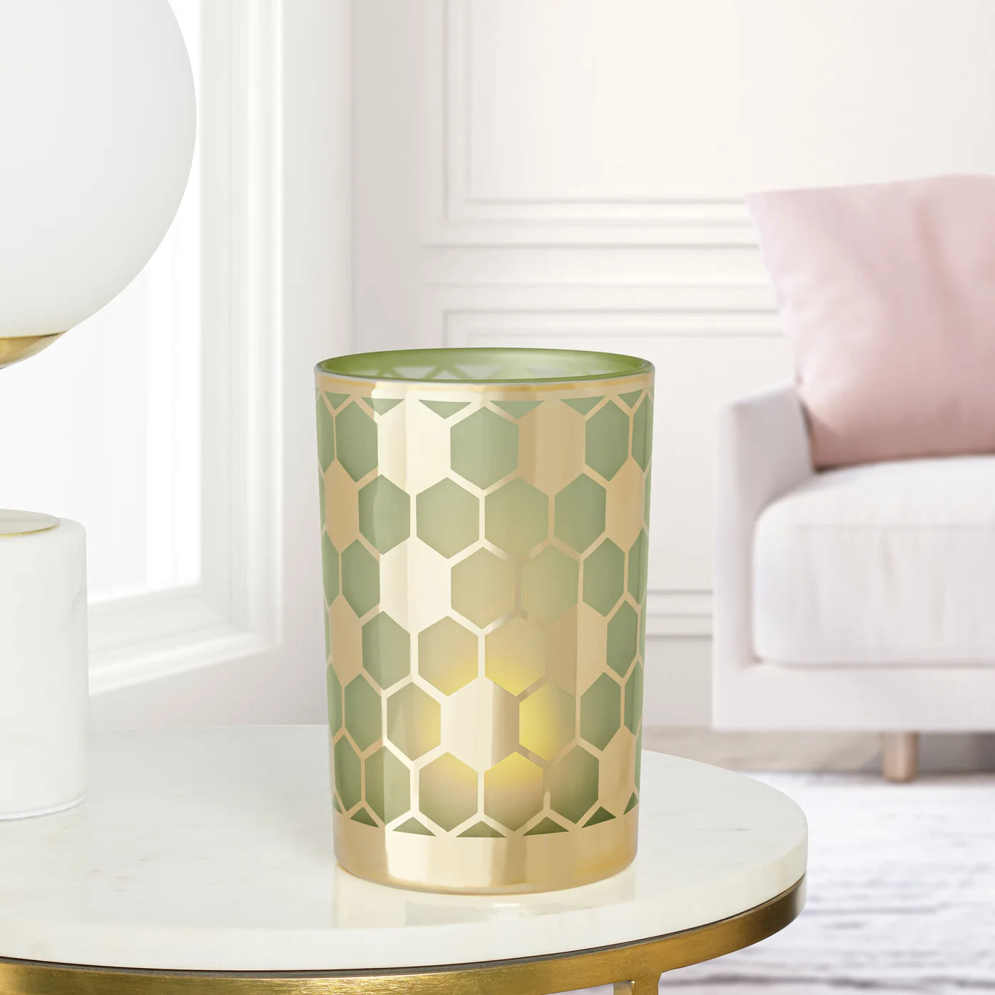 Honeycomb Gold Mirror 4.5x7" Glass Hurricane Vase - Green